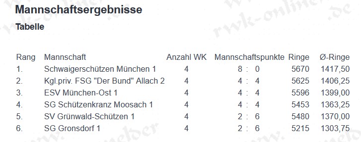 Polizei-Sportschützen München 1 : Schwaigerschützen München 1   4 : 1     2 : 0     1777 : 1756